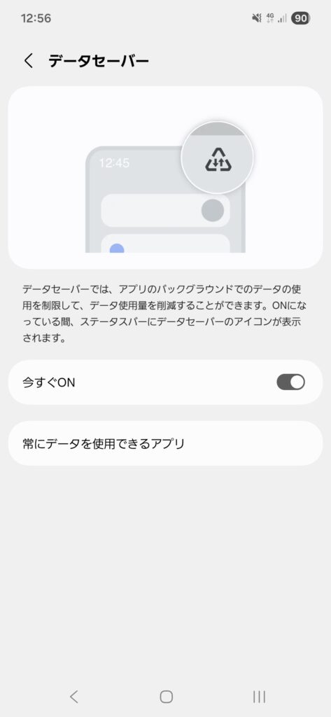 Android環境でGmailの通知がWifiでしかリアルタイム受信できない場合、主な原因としてはデータセーバーの制御が働いているためです。データセーバーとはアプリのバックグラウンドでのデータ使用料を制限するためにあります。おそらくこの設定がオンになっているためWiFiでしかリアルタイム受信できないようになっています。